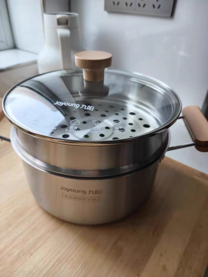 【捡漏】九阳不锈钢汤锅!全新!!!租房党,家用专属,低价出!!!自提减10元原价131买的九阳316L不锈钢汤锅22cm 带原木手柄锅盖说明书都在 家用2-3人 4.1L容量燃气灶电磁炉都能用 无涂层...