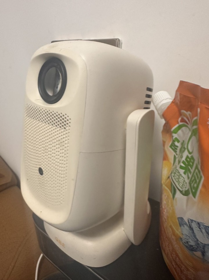 大眼橙C2 Air高亮版投影仪,1080P高清画质,330lm亮度,内置一体式云台可调节角度。机身白色,外观干净整洁,功能完好。配件齐全:主机+电源线,画面清晰,投影效果好,适合家用看剧追番。支持同城...