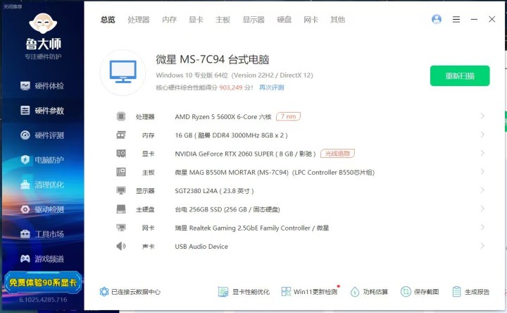 Windows 10 专业版 64位显示器 24寸直屏 75hz高刷 2560*1440分辨率主 板 微星 B550M MORTAR 机带 RAM 16G处理器 AMD Ryz...