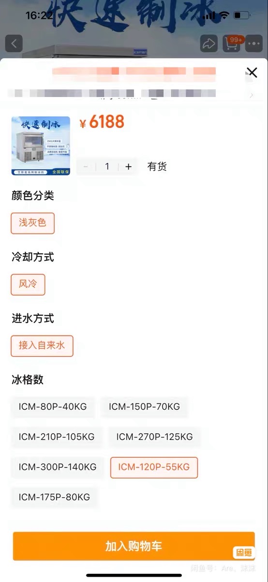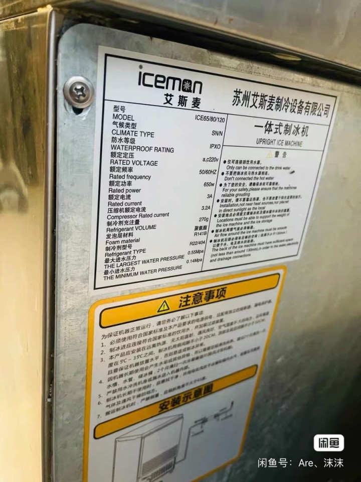 艾斯麦制冰机 蓝光 全不锈钢材质 进口压缩机 9成新 功能完好 日产冰 60kg 买来用了半年 放家里一直吃灰 同城自提.外地邮费自理/可小刀